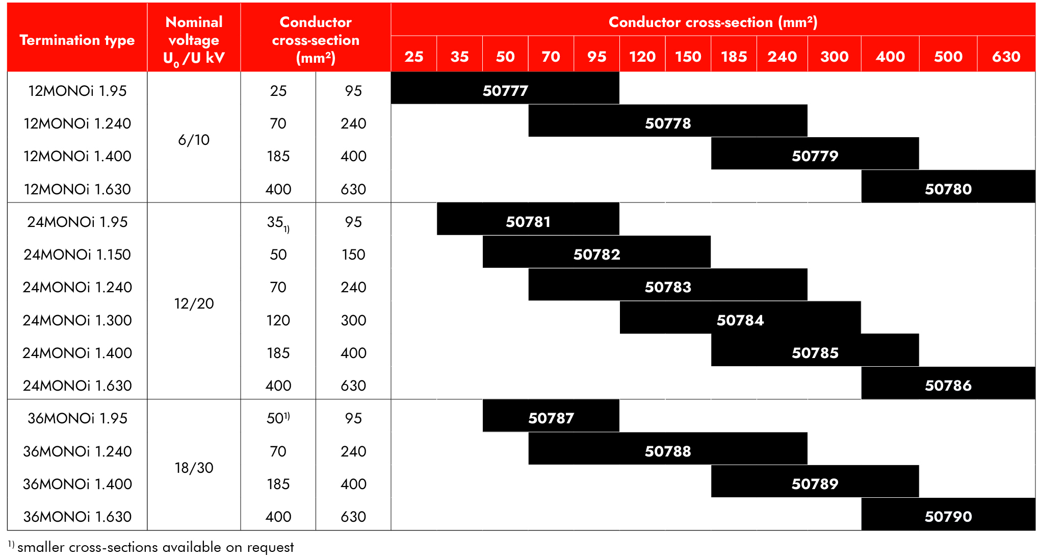 Výrobky popsané v tomto katalogu jsou určeny k propojování holých jader energetických kabelů (třída 1 a 2) s popisem kulaté plné (RE), kulaté laněné (RM), sektorové plné (SE), sektorové laněné (SM) a kulaté laněné komprimované (RMV) pro teploty vodičů do 90 °C. Všechny výplňové materiály vodičů, jako jsou pásky, příze, prášek apod., je třeba před montáží zcela odstranit. Je nezbytné, aby uživatel provedl kontrolu na základě skutečných rozměrů existujících vodičů. To platí i pro použití vodičů třídy 6 nebo jiných speciálních typů vodičů.