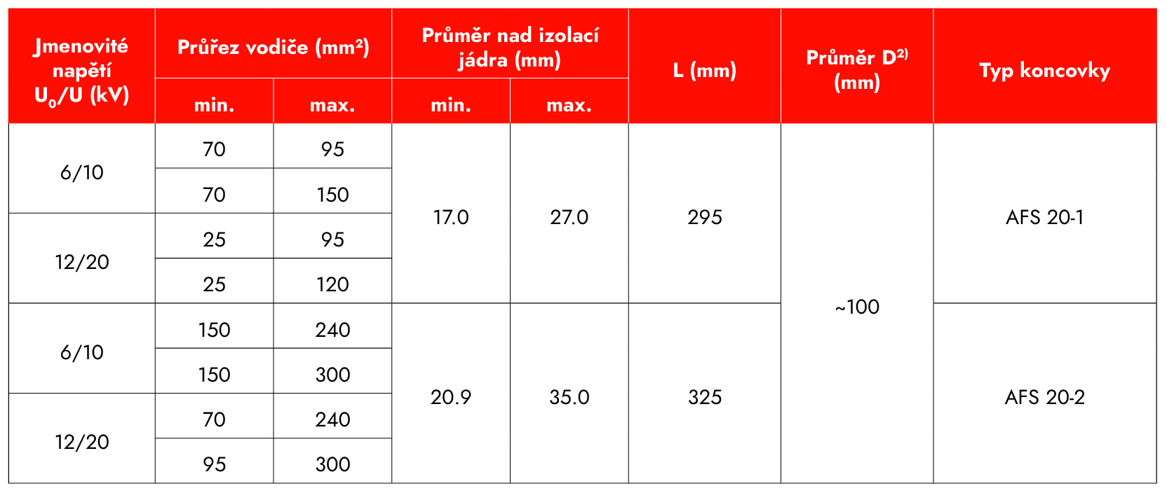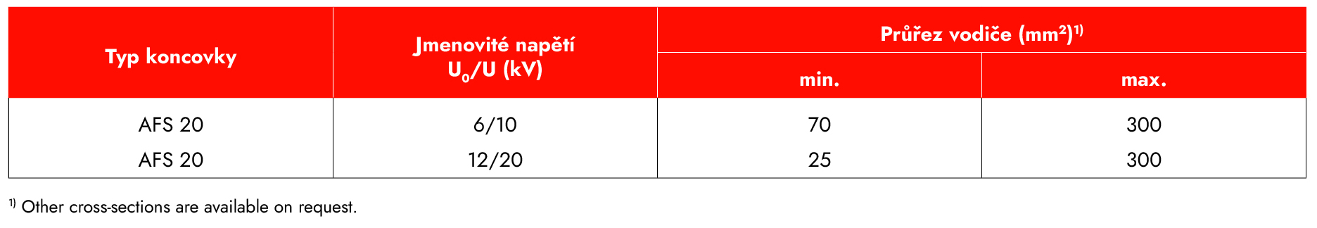 Koncovky AFS jsou vhodné pro venkovní použití na vysokonapěťových kabelech s plastovou izolací a se snadno sloupatelnou vytlačovanou vodivou vrstvou nebo nesloupatelnou vytlačovanou vodivou vrstvou.