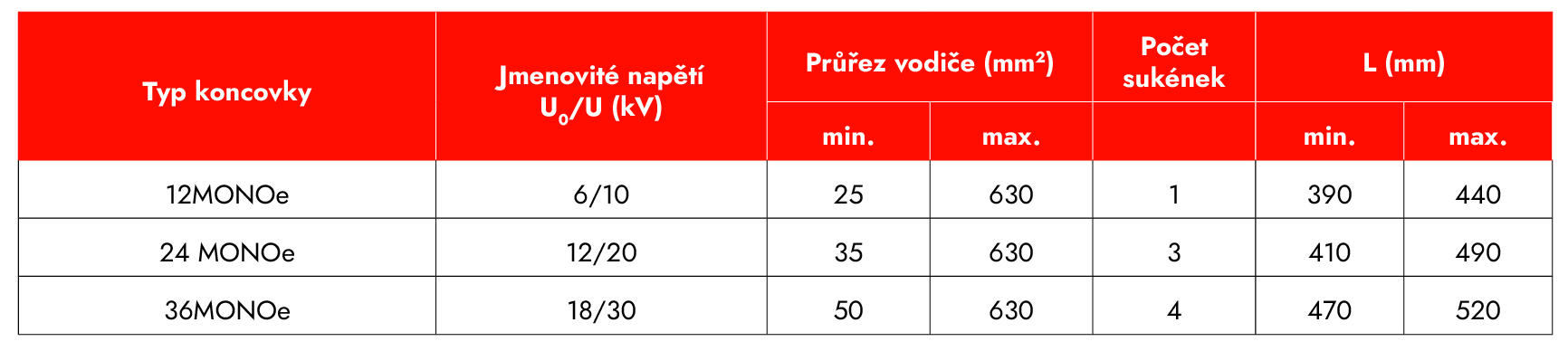 MONOe – Teplem smrštitelná koncovka pro venkovní použití, do 36 kV
