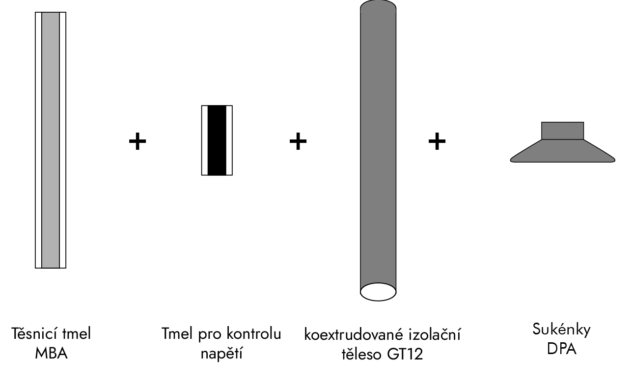 Jednodílné, koextrudované (dvoustěnné) izolační tělo GT12 se skládá z vnitřní trubice pro řízení pole a vnější vrstvy proti plazivým proudům. Lze jej smrštit na připravený kabel v minimálně jednom smršťovacím postupu a vyznačuje se velmi malou stavební délkou.