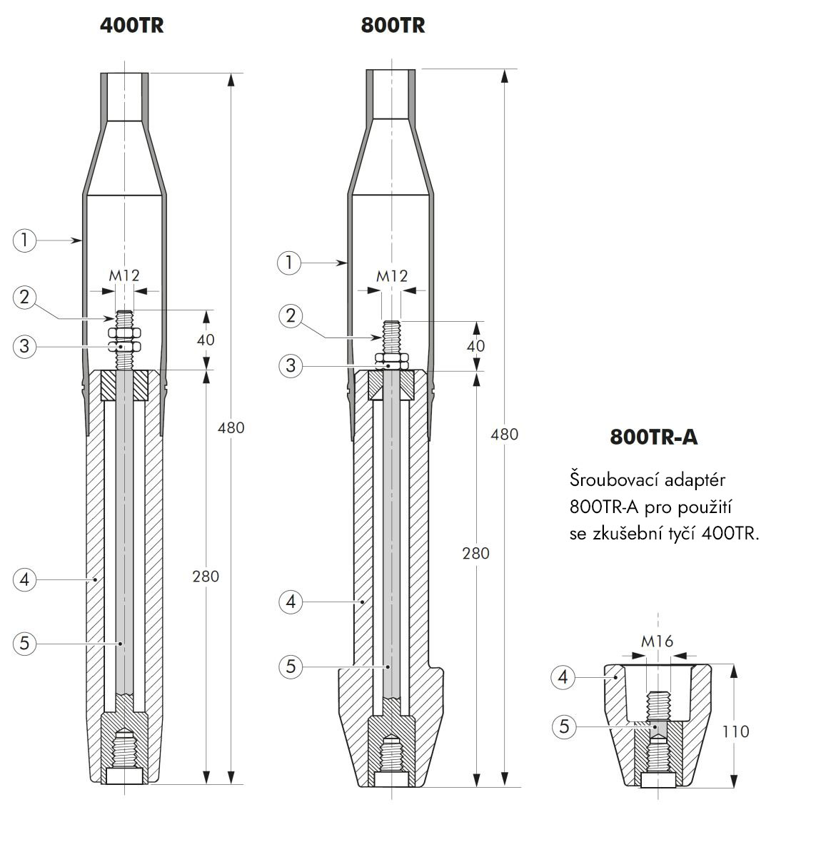 Šroubovací adaptér 800TR-A pro použití se zkušební tyčí 400TR.