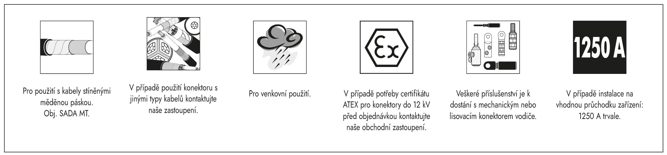 • Každý oddělitelný konektor je před opuštěním továrny podroben zkoušce na střídavé výdržné napětí a částečné výboje.