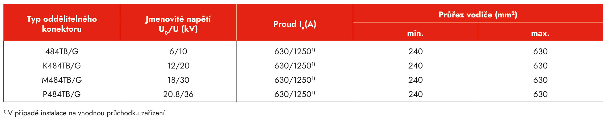 1 sada kompaktního T-konektoru pro 12/20 kV, pro 120–240 mm² s mechanickým konektorem vodiče. Objednávka dle tabulky: K484TB/G s číslem dílu 57386.