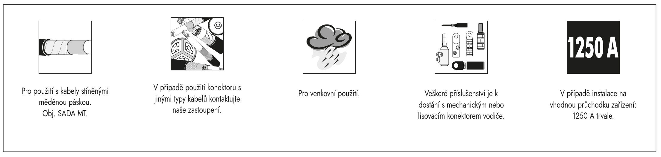 1 sada spojovacího konektoru pro 12/20 kV, pro 95–300 mm² s mechanickým konektorem vodiče.