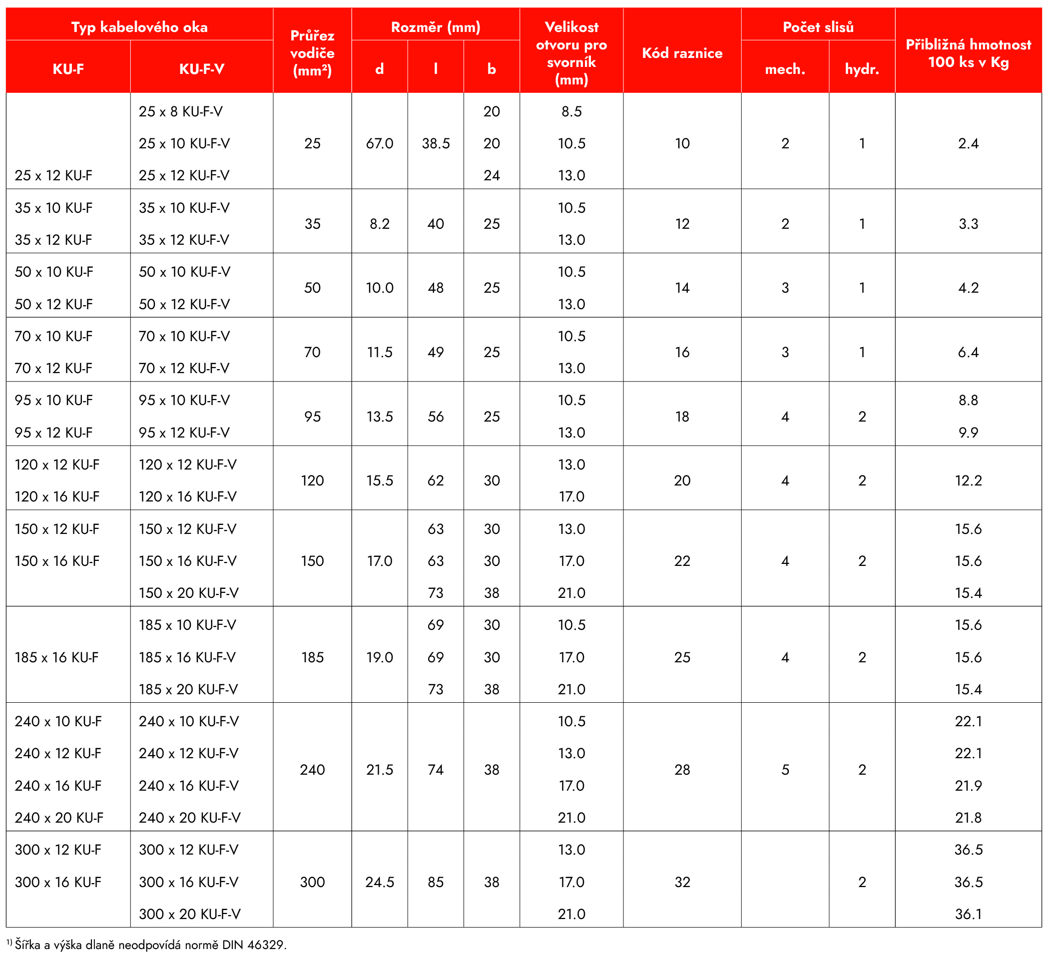 Lisovací kabelová oka, Cu, podélně utěsněná, (KU-F/-V)