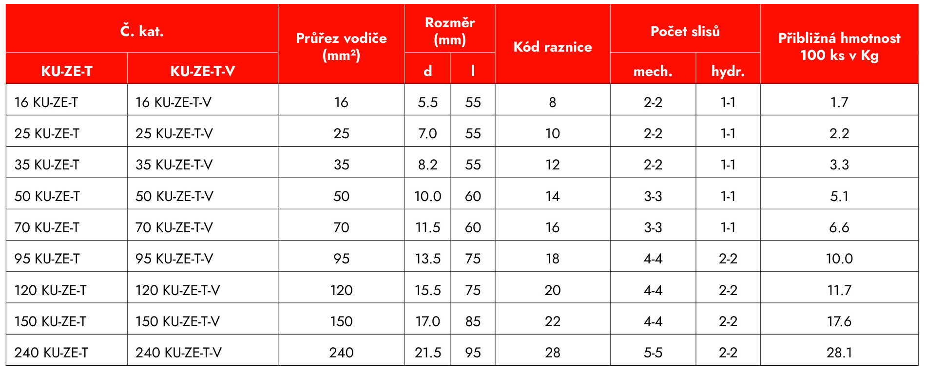 Výběrová tabulka KU-ZE-T_KU-ZE-T-V