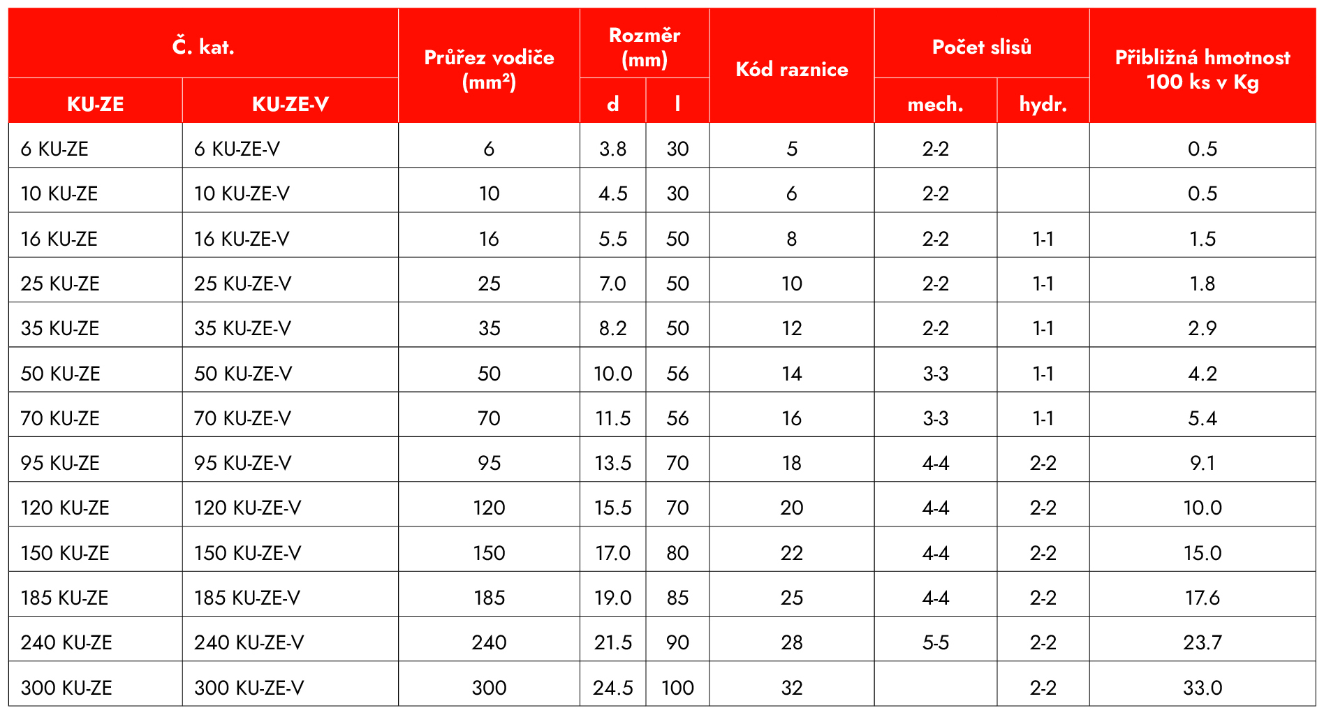 Výrobky popsané v tomto katalogu jsou určeny k propojování jader energetických kabelů (třída 1 a 2) s popisem kulaté plné (RE), kulaté laněné (RM), sektorové plné (SE), sektorové laněné (SM) a kulaté laněné komprimované (RMV) výhradně na