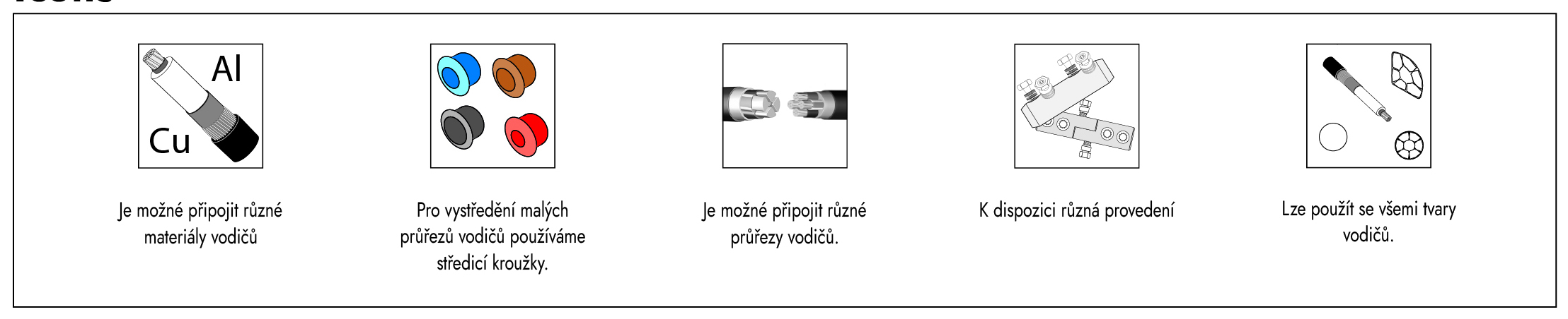 Lze použít pro měděné a hliníkové vodiče třídy 1 a 2 podle normy EN 60228. V případě použití našich mechanických konektorů s ohebnými měděnými vodiči třídy 5 nás kontaktujte.