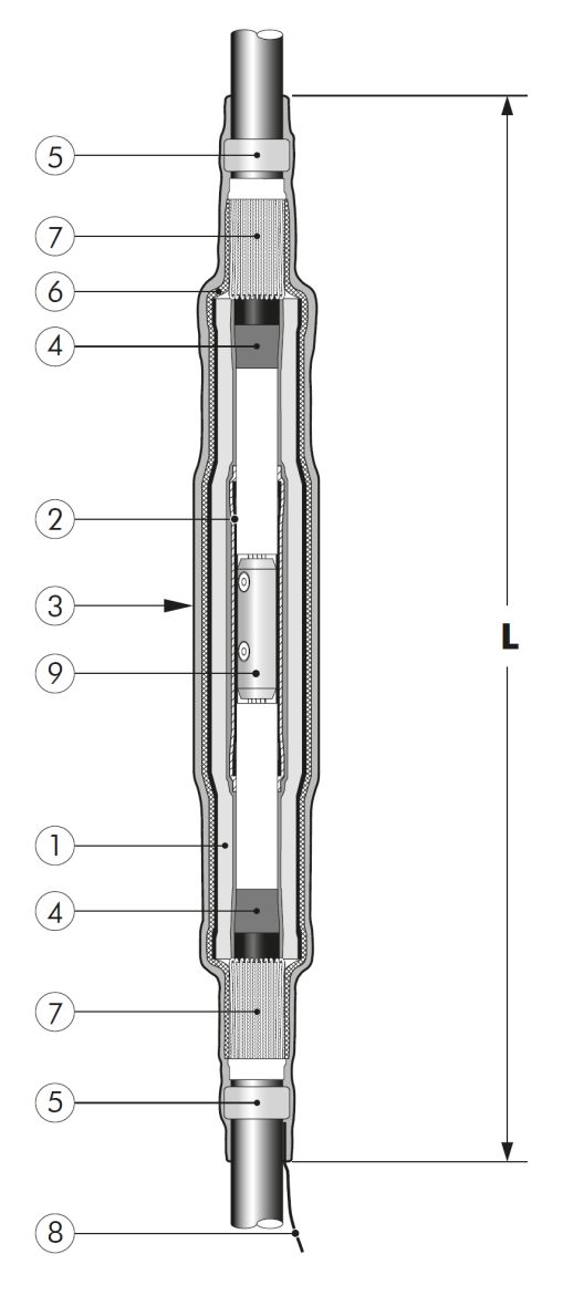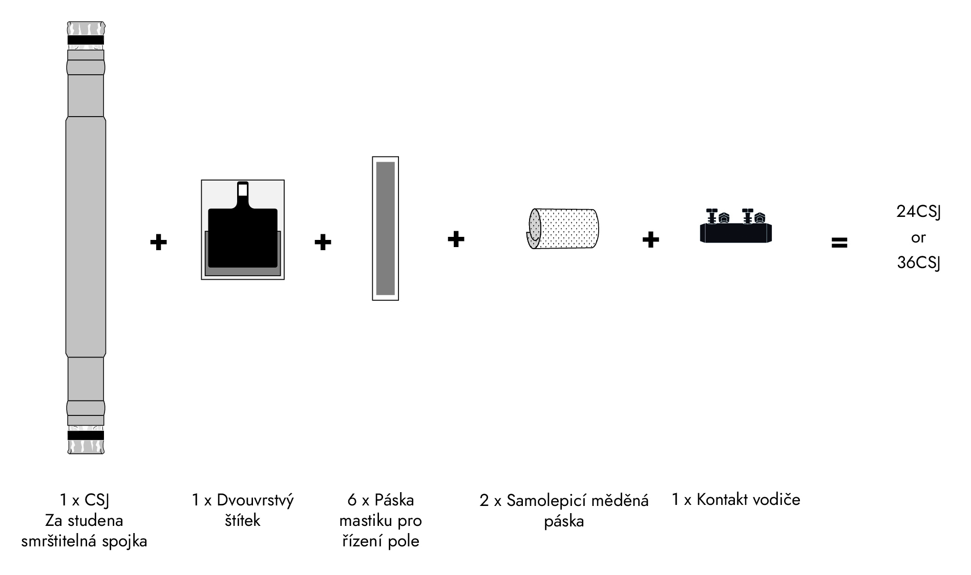 Za studena smrštitelná přímá spojka typu CSJ je vhodná pro spojení vysokonapěťových kabelů s plastovou izolací a se snadno sloupatelnou vytlačovanou vodivou vrstvou nebo nesloupatelnou vytlačovanou vodivou vrstvou. Díky mechanickému konektoru vodiče, který je součástí sady spojky, je spojování kabelů s různými velikostmi a materiály vodiče rychlé a jednoduché.