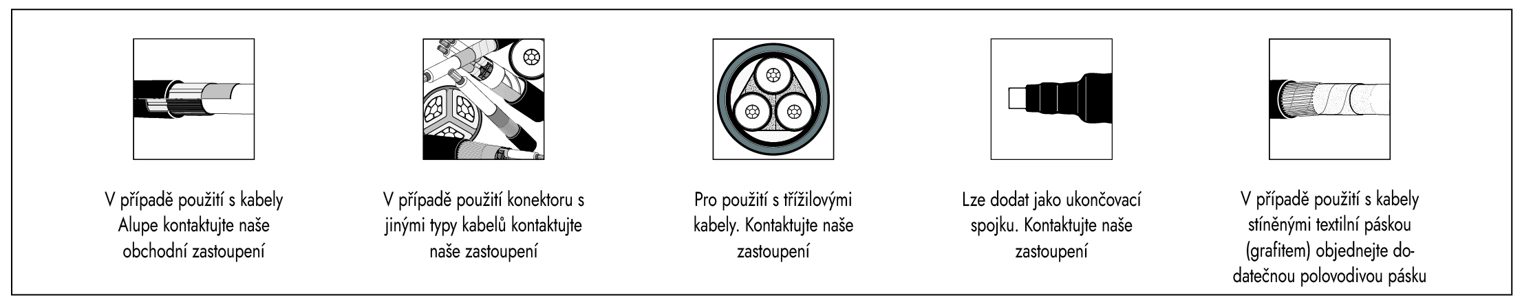 Výrobky popsané v tomto katalogu jsou určeny k propojování holých jader energetických kabelů (třída 1 a 2) s popisem kulaté plné (RE), kulaté laněné (RM), sektorové plné (SE), sektorové laněné (SM) a kulaté laněné komprimované (RMV) pro teploty vodičů do 90 °C. Všechny výplňové materiály vodičů, jako jsou pásky, příze, prášek apod., je třeba před montáží zcela odstranit. Je nezbytné, aby uživatel provedl kontrolu na základě skutečných rozměrů existujících vodičů. To platí i pro použití vodičů třídy 6 nebo jiných speciálních typů vodičů.