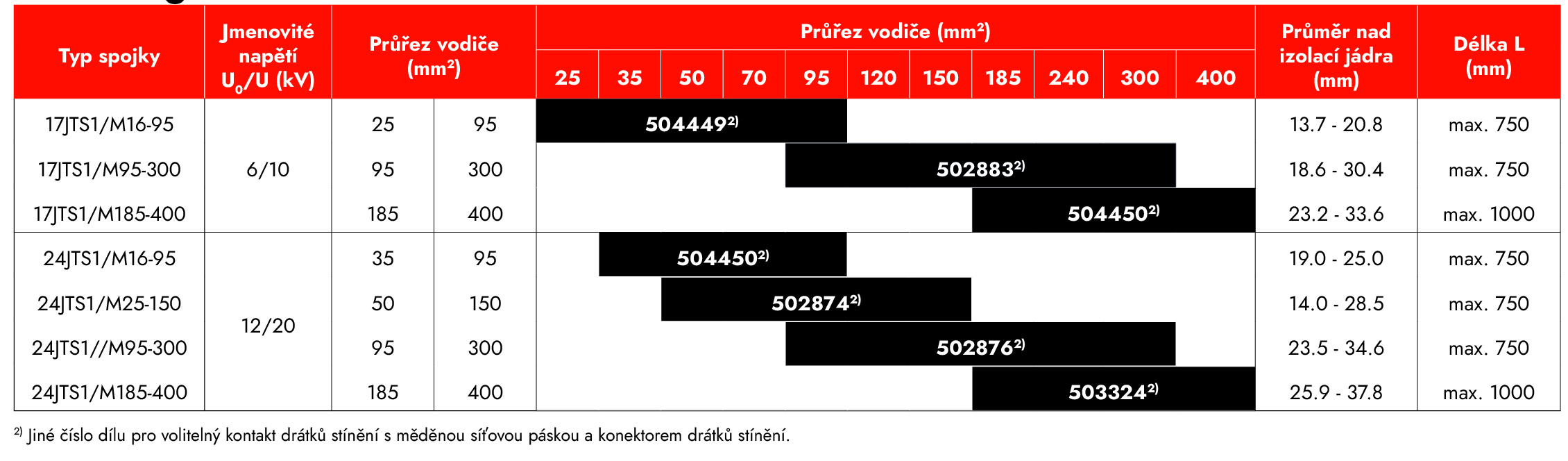 • Teplem smrštitelné přímé spojky JTS1 splňují mezinárodní výkonnostní normy včetně norem CENELEC HD 629.1 a IEC 60502-4.