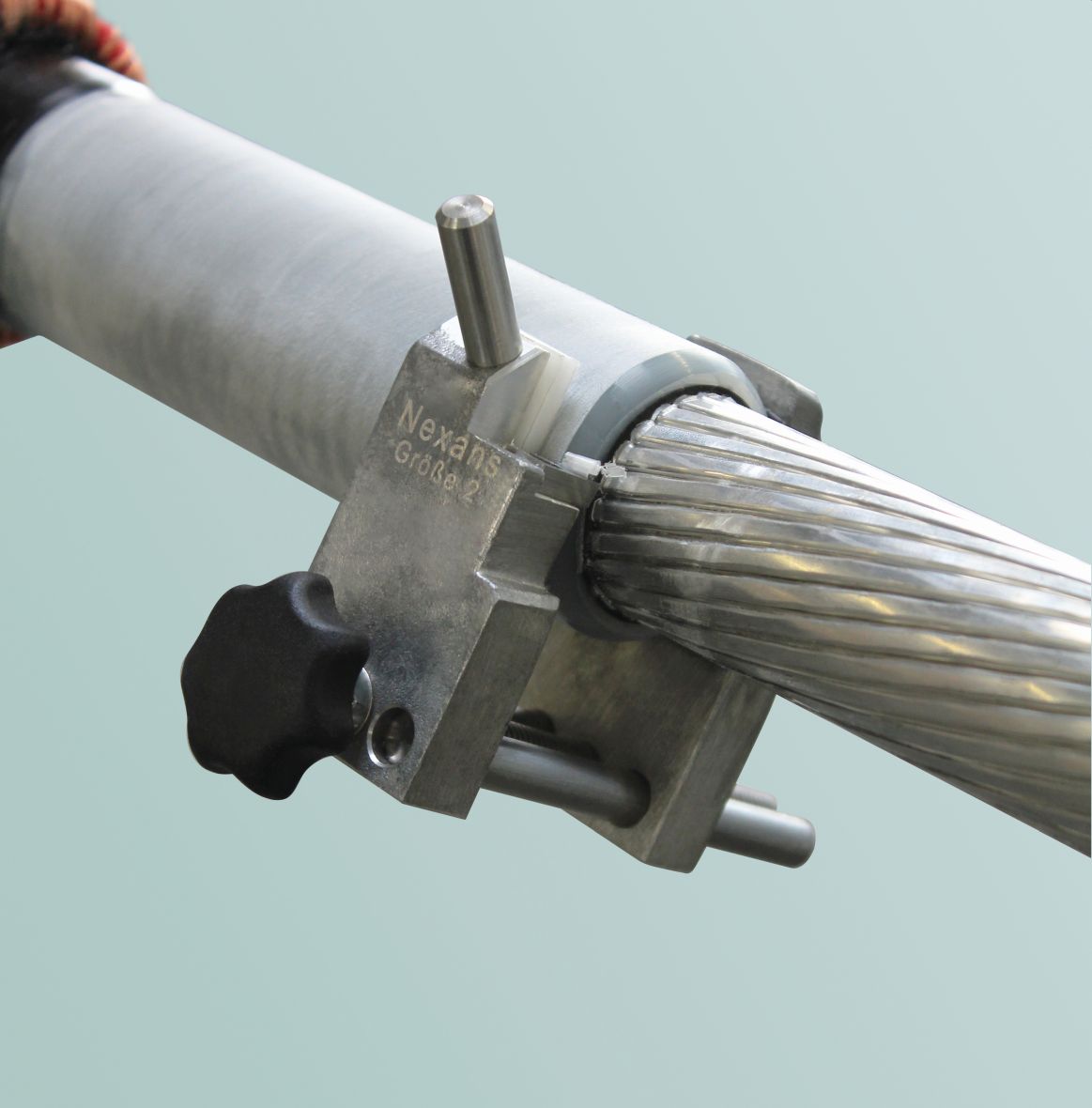 Tento velmi snadno použitelný nástroj sráží ostré hrany na odříznutém okraji izolace kabelu, aby se zabránilo případnému poškození a usnadnila se instalace nasouvacího příslušenství. Lze jej použít pro průměry nad izolací jádra od 15 mm do 60 mm po odloupnutí vnějšího pláště.