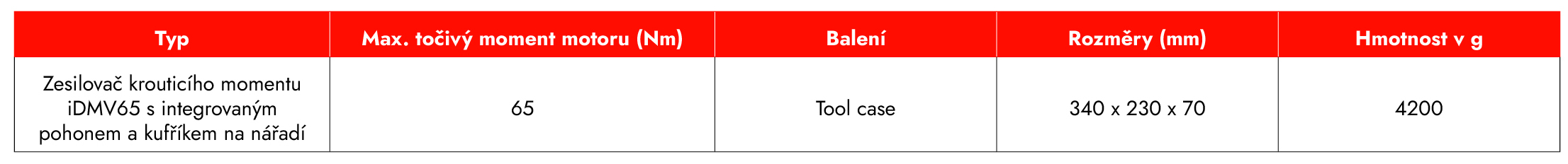 Zesilovač točivého momentu iDMV65, s vestavěným pohonem a kufrem