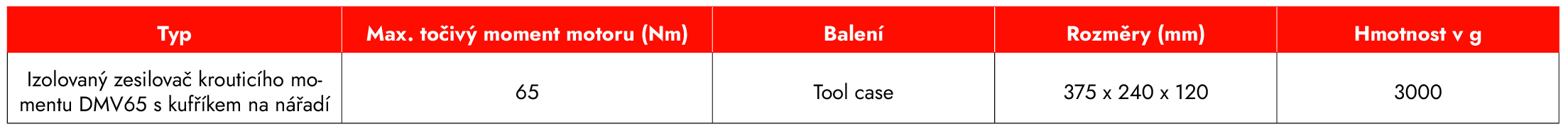 Zesilovač točivého momentu DMV65, izolovaný, s kufrem