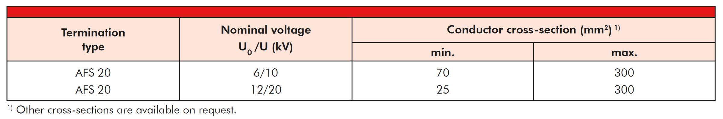 1 AFS 20 kit for 12/20 kV, for 70-240 mm² with mechanical cable lug (palm hole diameter 13 mm).
