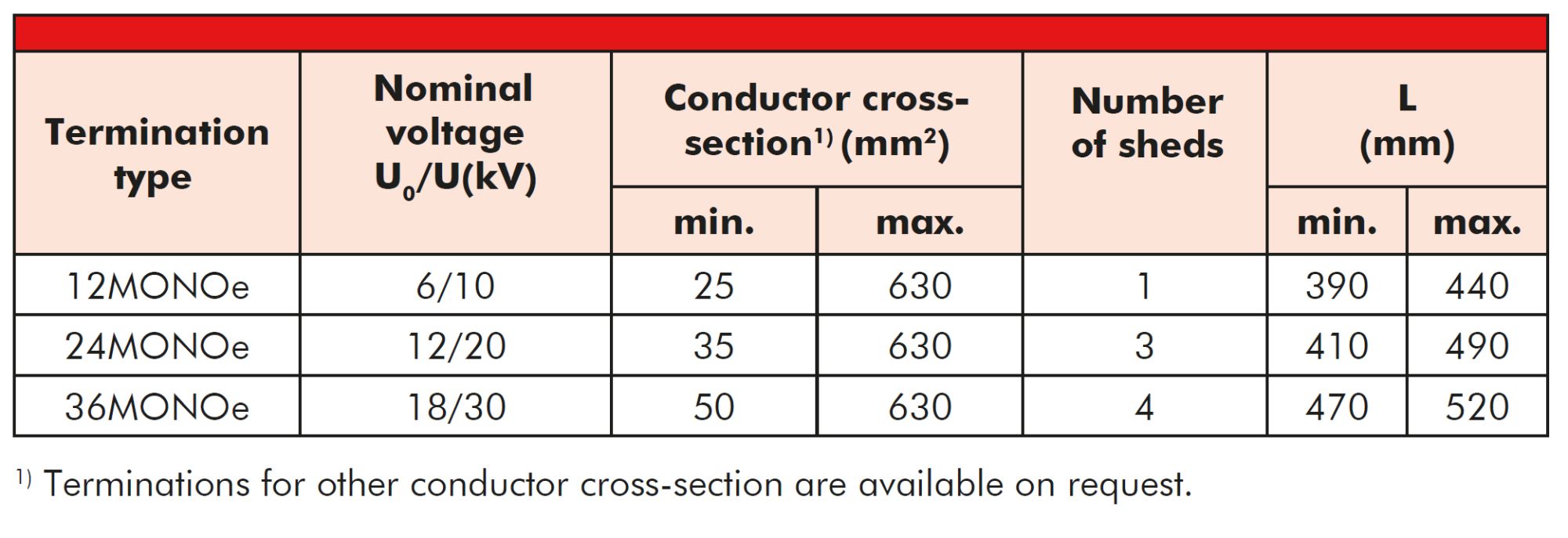 MONOe - Heat-shrinkable outdoor termination for single-core XLPE cable and multiple voltage levels, up to 36 kV