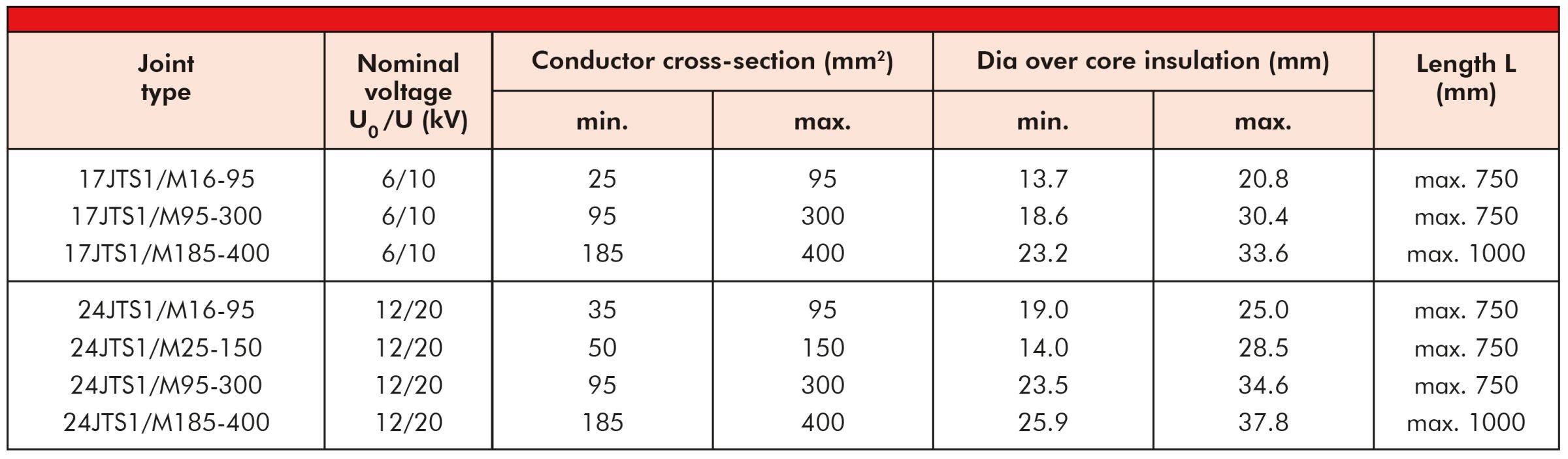 • Heat-shrinkable straight joints JTS1 meet international performance standards including CENELEC HD 629.1 and IEC 60502-4.